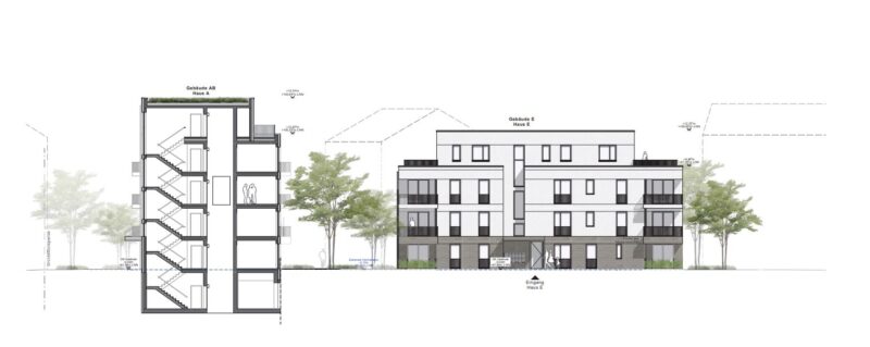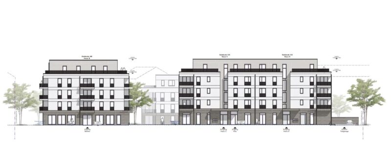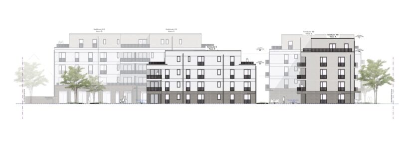 Planung von 3 Gebäuden mit 49 Wohneinheiten, einer Kita und Gewerbefläche