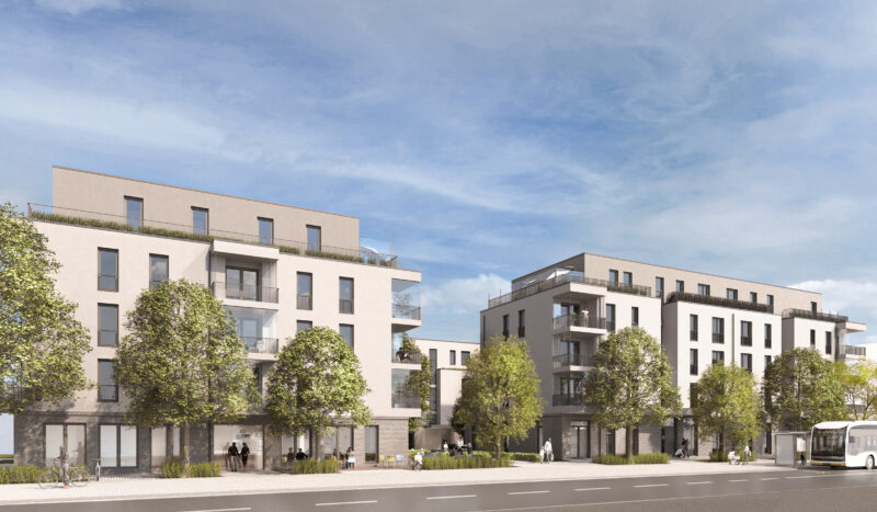 Auf dem ehemaligen Gelände des Autohaus Can sollen drei Mehrfamilienhäuser, eine Kita und eine Gewerbeeinheit auf einer Tiefgarage entstehen. Zwei Mehrfamilienhäuser liegen entlang der Wiesbadener Straße im Süden. Sie verfügen über vier Vollgeschosse und ein Staffelgeschoss. Das dritte Mehrfamilienhaus befindet sich an der nördlichen Grundstücksgrenze mit drei Vollgeschossen und einem Staffelgeschoss.
