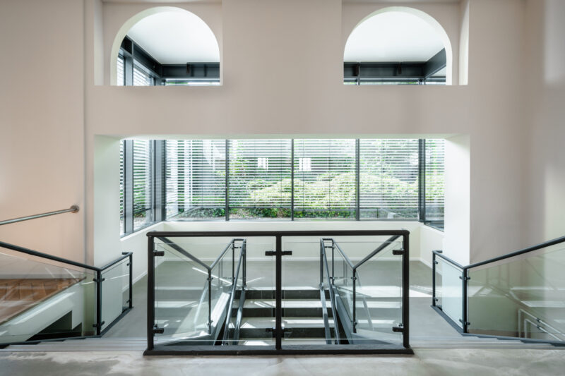In einem denkmalgeschützten Gebäude mit historischem Charme wurden 560 m² Gewerbefläche einer umfassenden Sanierung unterzogen, um sie den heutigen energetischen Ansprüchen gerecht zu machen. Die aus der Planung hervorgehenden Sanierungsarbeiten haben nicht nur die Integrität des Gebäudes bewahrt, sondern auch modernen Komfort und Effizienz eingeführt. Durch neue Fensterdurchbrüche strömt jetzt mehr natürliches Licht in die Räumlichkeiten, was eine helle und einladende Atmosphäre schafft. Die Böden wurden behutsam aufgearbeitet und im Bereich des Glasanbaus wurde ein hochwertiger Sichtestrichbelag verlegt, der den Raum noch attraktiver macht.
